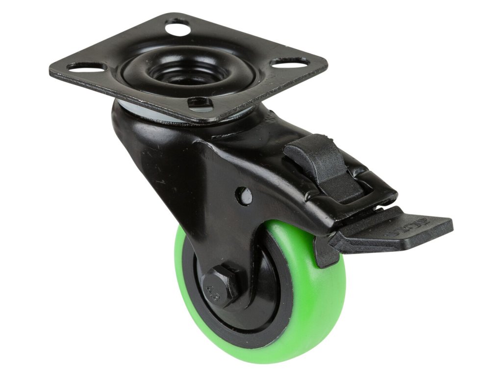 Apparaterolle A820.A85.050.04, Produkttyp: Lenkrollen mit Totalfeststeller, Befestigung: , Ø Schraubloch: 40x40/34x34 mm, Material/Art des Radkörpers: 6.3, Material der Lauffläche: thermoplastischer Gummi grün, Lager: 0, Ø Rad: 50 mm, Tragkraft: 50 kgDodatočné parametre