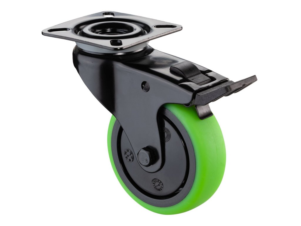 Apparaterolle A820.A85.075.04, Produkttyp: Lenkrollen mit Totalfeststeller, Befestigung: , Ø Schraubloch: 48x48/38x38 mm, Material/Art des Radkörpers: 6.3, Material der Lauffläche: thermoplastischer Gummi grün, Lager: 0, Ø Rad: 75 mm, Tragkraft: 60 kgDodatočné parametre