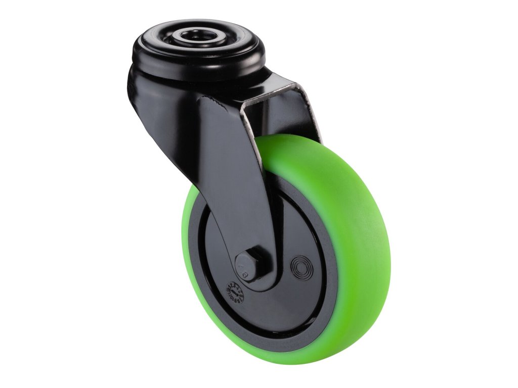 Apparaterolle A801.A85.075.04, Produkttyp: Lenkrollen, Befestigung: Rückenloch, Material/Art des Radkörpers: 0, Material der Lauffläche: thermoplastischer Gummi grün, Lager: 0, Ø Rad: 75 mm, Tragkraft: 60 kgDodatočné parametre