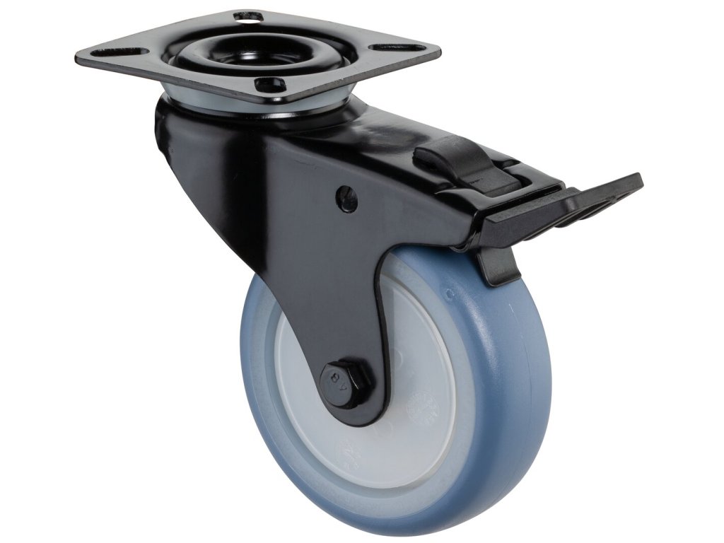 Apparaterollen A820.A85.075.05, Produkttyp: Lenkrollen mit Totalfeststeller, Befestigung: , Ø Schraubloch: 48x48/38x38 mm, Material/Art des Radkörpers: 6.3, Material der Lauffläche: thermoplastischer Gummi hellblau, Lager: 0, Ø Rad: 75 mm, Tragkraft: 60 kgDodatočné parametre