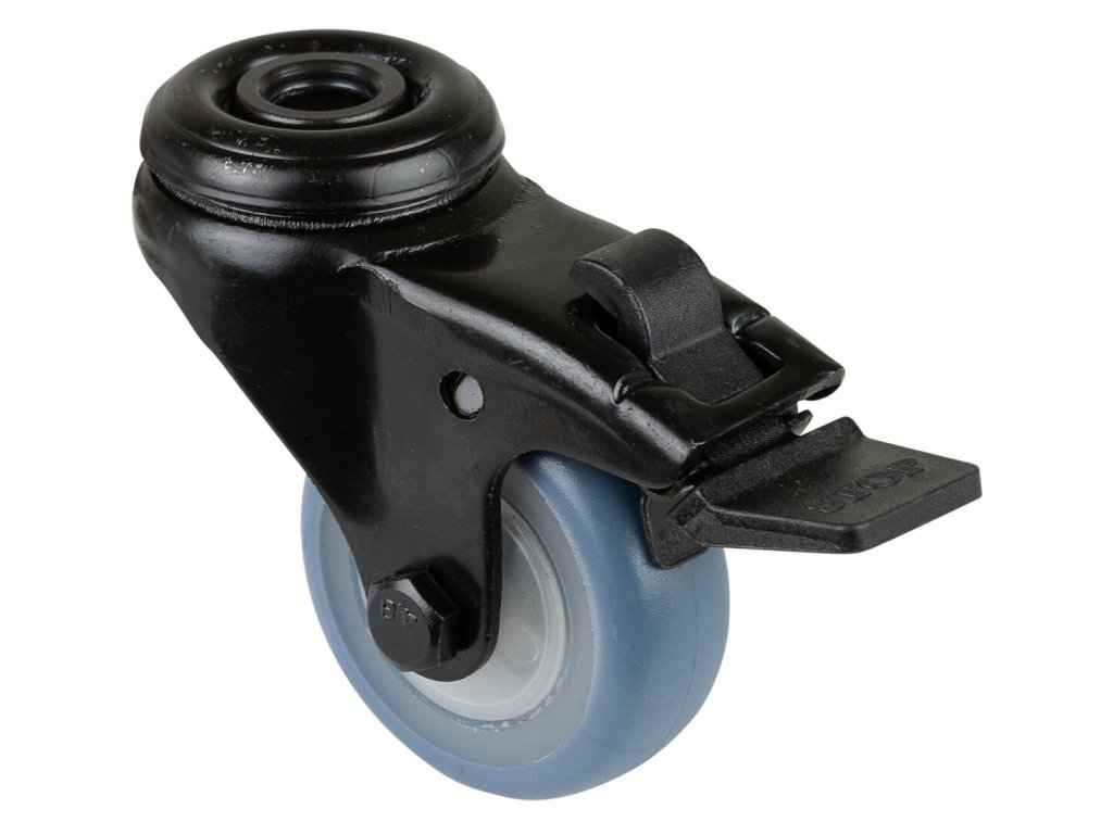 Apparaterolle A821.A85.050.05, Produkttyp: Lenkrollen mit Totalfeststeller, Befestigung: Rückenloch, Material/Art des Radkörpers: 0, Material der Lauffläche: thermoplastischer Gummi hellblau, Lager: 0, Ø Rad: 50 mm, Tragkraft: 50 kgDodatočné parametre