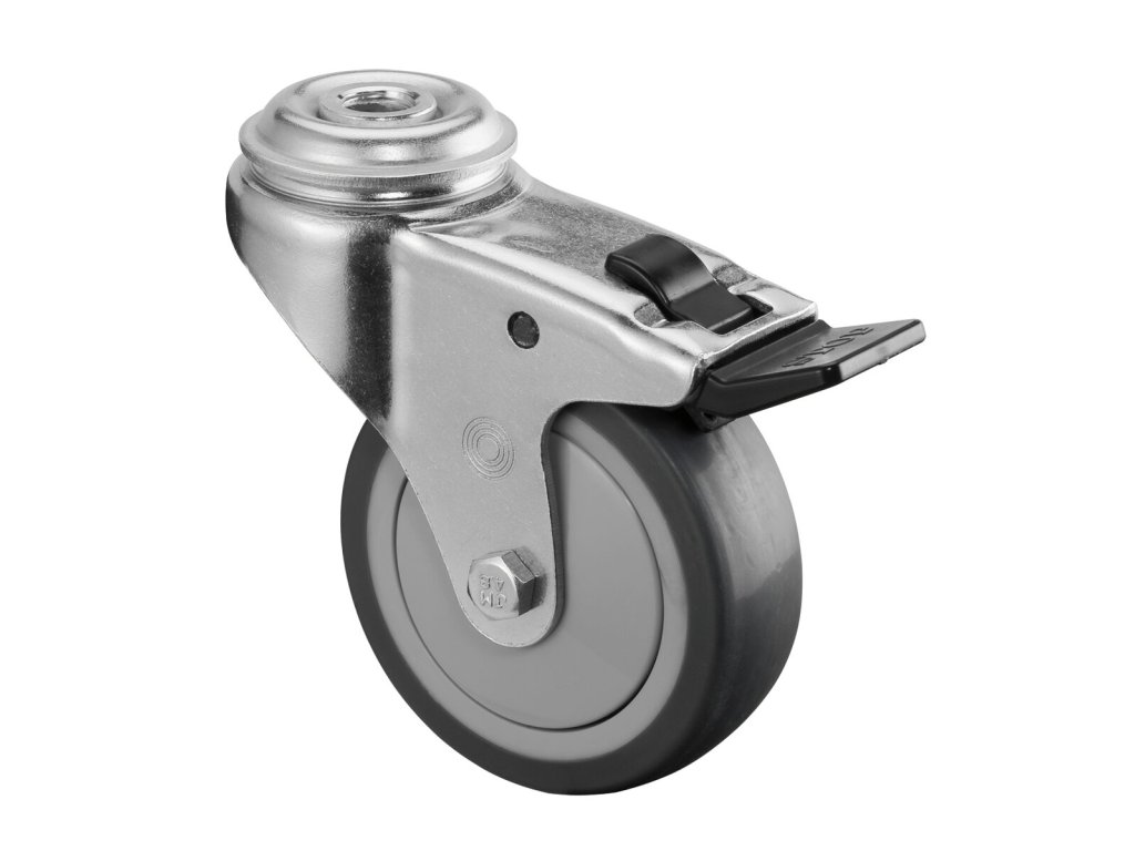 Apparaterolle A321.A85.075, Produkttyp: Lenkrollen mit Feststeller, Befestigung: Rückenloch, Material/Art des Radkörpers: 0, Material der Lauffläche: thermoplastischer Gummi grau, Lager: 0, Ø Rad: 75 mm, Tragkraft: 60 kgDodatočné parametre