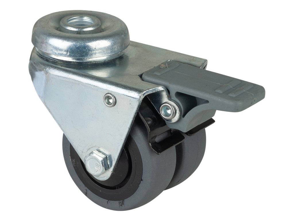 Apparatedoppelrolle B121.A89.050, Produkttyp: Lenkrollen mit Feststeller, Befestigung: Rückenloch, Material/Art des Radkörpers: 0, Material der Lauffläche: thermoplastischer Gummi grau, elektrisch leitfähig, Lager: 0, Ø Rad: 50 mm, Tragkraft: 60 kgDodatočné parametre