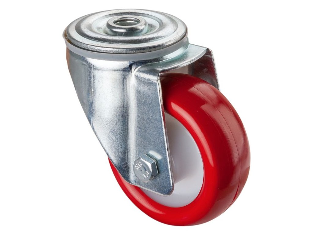 Transportrolle L101.B31.080, Produkttyp: Lenkrollen, Befestigung: Rückenloch, Material/Art des Radkörpers: 0, Material der Lauffläche: Polyurethan rot 98 +/-4 Shore A, Lager: 0, Ø Rad: 80 mm, Tragkraft: 120 kgDodatočné parametre