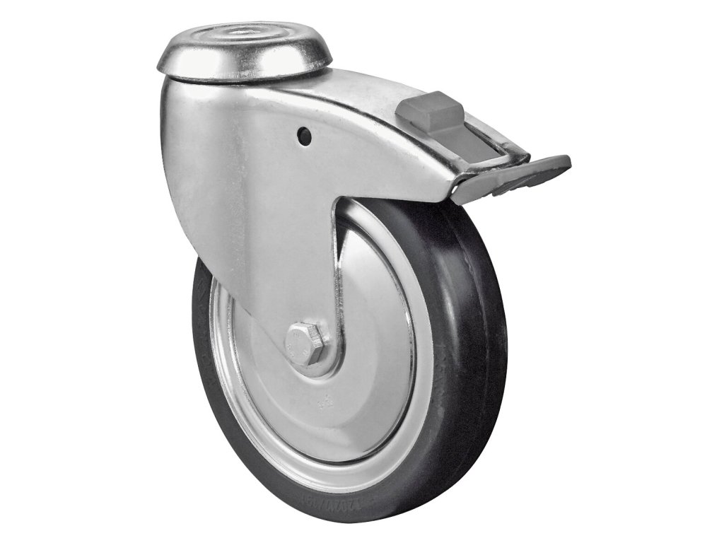 Schwere Apparaterolle C121.A89.125, Produkttyp: Lenkrollen mit Feststeller, Befestigung: Rückenloch, Material/Art des Radkörpers: 0, Material der Lauffläche: thermoplastischer Gummi grau, elektrisch leitfähig, Lager: 0, Ø Rad: 125 mm, Tragkraft: 100 kgDodatočné parametre