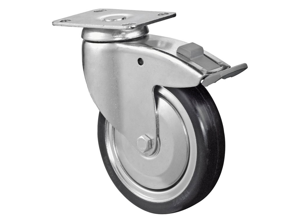 Schwere Apparaterolle C120.A89.125, Produkttyp: Lenkrollen mit Feststeller, Befestigung: Expanderbefestigung, Ø Schraubloch: 75x45 mm, Material/Art des Radkörpers: 9, Material der Lauffläche: thermoplastischer Gummi grau, elektrisch leitfähig, Lager: 0, Ø Rad: 125 mm, Tragkraft: 100 kgDodatočné parametre
