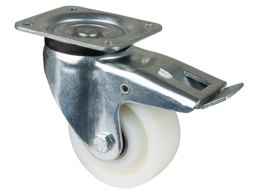 Schwerlastrolle L620.B15.125, Produkttyp: Lenkrollen mit Totalfeststeller, Befestigung: , Ø Schraubloch: 104x78 mm, Material/Art des Radkörpers: 11, Material der Lauffläche: Kunststoff, Lager: 0, Ø Rad: 125 mm, Tragkraft: 700 kgDodatočné parametre