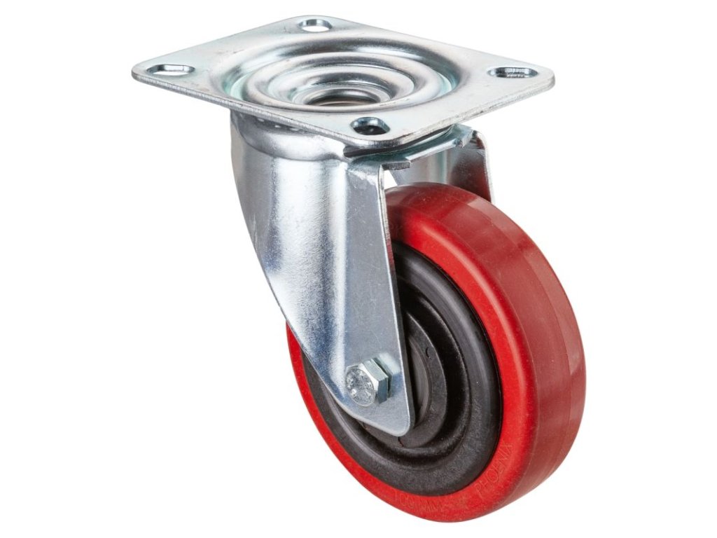 Polyamidový disk kolieska sýtený sklenými vláknami s 2x guličkovým ložiskom, behúň silikónová guma vhodná pre teploty -40/+250°C. Oceľová pozinkovaná vidlica. Priemer kolieska 100mm, šírka behúňa 28mm, veľkosť prírubovej dosky 100x85mm, rozteč otvorov 80x60mm, veľkosť otvoru na uchytenie 8,5mm, stavebná výška 128mm, centrovanie 37mm, nosnosť 100kg.