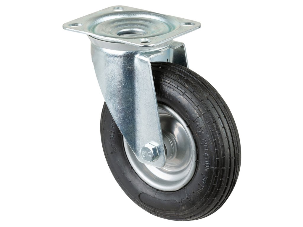 Transportrolle L400.C90.200, Produkttyp: Lenkrollen, Befestigung: , Ø Schraubloch: 105x75 mm, Material/Art des Radkörpers: 11, Material der Lauffläche: Luftrad, Gummi schwarz, Lager: 0, Ø Rad: 200 mm, Tragkraft: 75 kgDodatočné parametre