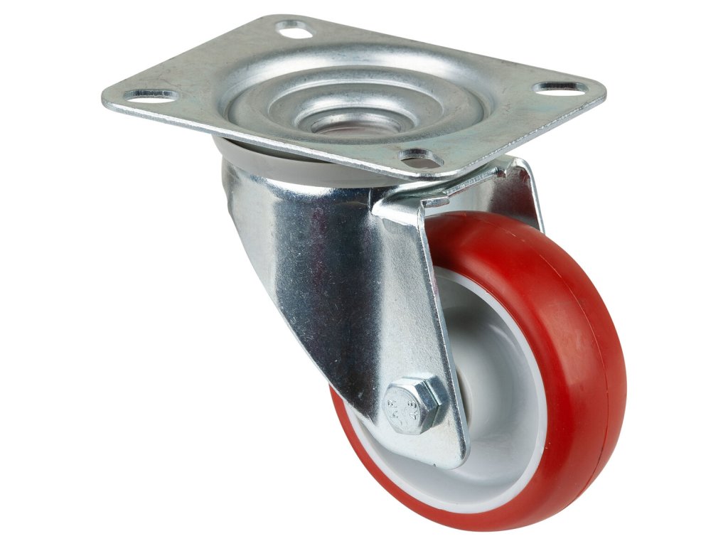 Transportrolle L400.B31.080, Produkttyp: Lenkrollen, Befestigung: , Ø Schraubloch: 84x64/76x56 mm, Material/Art des Radkörpers: 9, Material der Lauffläche: Polyurethan rot 98 +/-4 Shore A, Lager: 0, Ø Rad: 80 mm, Tragkraft: 120 kgDodatočné parametre