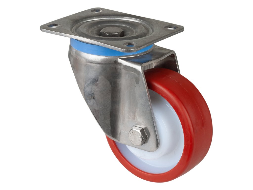 Edelstahl Schwerlastrollen HS100.B28.126, Produkttyp: Lenkrollen, Befestigung: , Ø Schraubloch: 105x80 mm, Material/Art des Radkörpers: 12, Material der Lauffläche: Polyurethan rot 98 +/-4 Shore A, Lager: 0, Ø Rad: 125 mm, Tragkraft: 500 kgDodatočné parametre