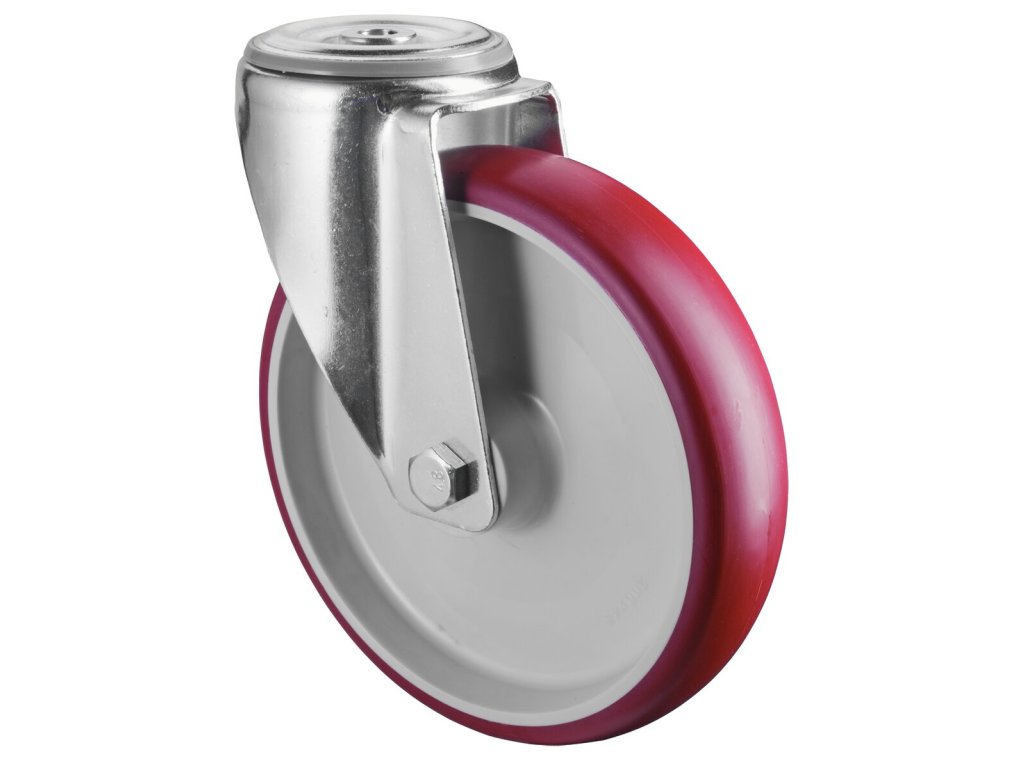 Transportrolle L101.B31.200, Produkttyp: Lenkrollen, Befestigung: Rückenloch, Material/Art des Radkörpers: 0, Material der Lauffläche: Polyurethan rot 98 +/-4 Shore A, Lager: 0, Ø Rad: 200 mm, Tragkraft: 300 kgDodatočné parametre