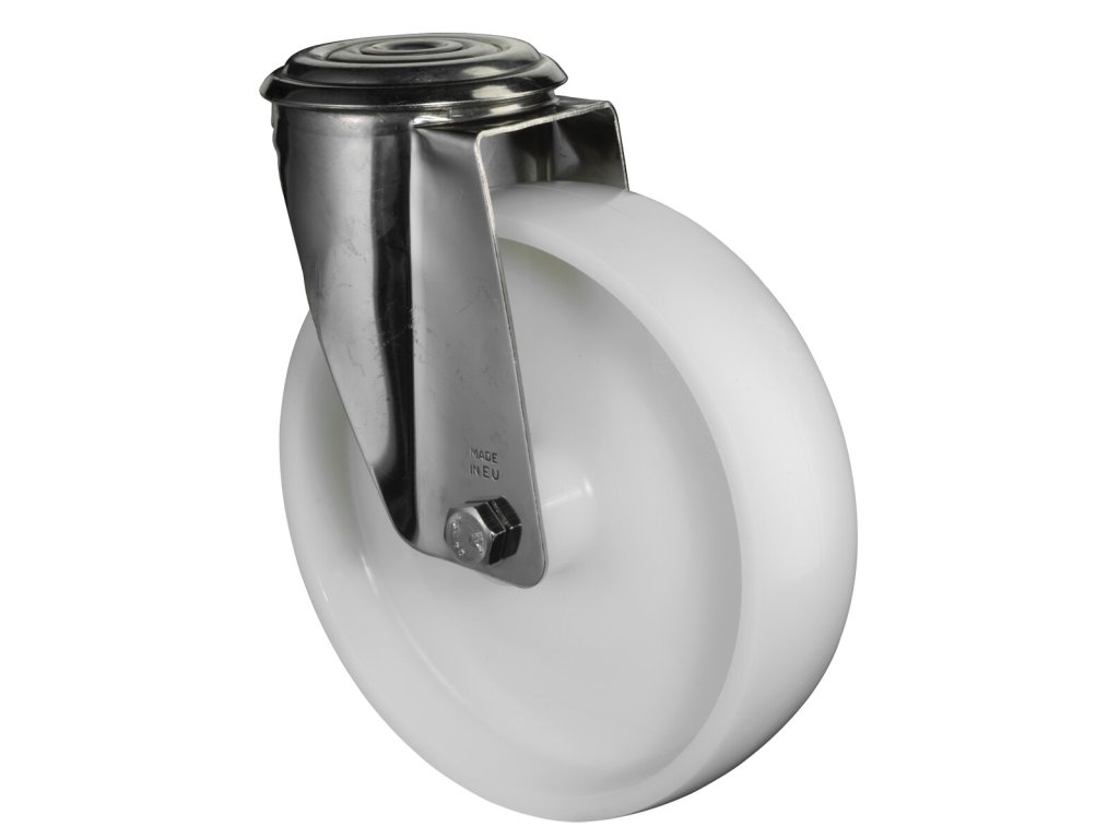Edelstahl Transportrolle H101.A90.200, Produkttyp: Lenkrollen, Befestigung: Rückenloch, Material/Art des Radkörpers: 0, Material der Lauffläche: Kunststoff, Lager: 0, Ø Rad: 200 mm, Tragkraft: 200 kg
