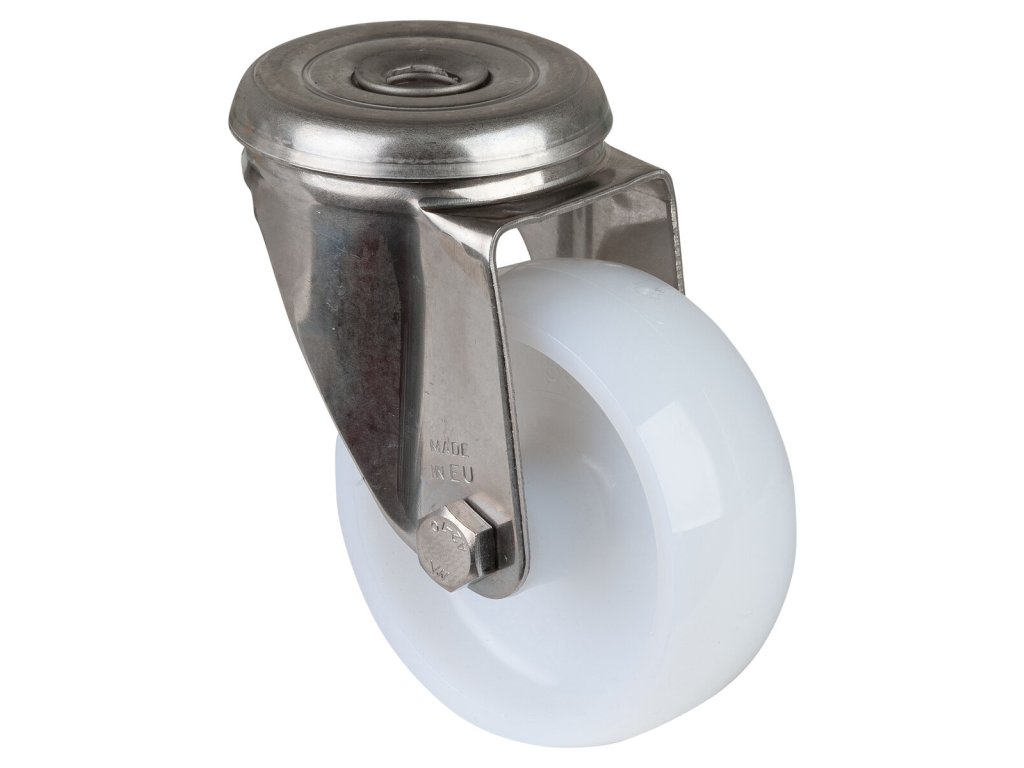 Edelstahl Transportrolle H101.A90.080, Produkttyp: Lenkrollen, Befestigung: Rückenloch, Material/Art des Radkörpers: 0, Material der Lauffläche: Kunststoff, Lager: 0, Ø Rad: 80 mm, Tragkraft: 100 kgDodatočné parametre