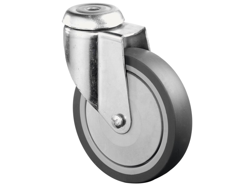 Schwere Apparaterolle C101.A85.125, Produkttyp: Lenkrollen, Befestigung: Rückenloch, Material/Art des Radkörpers: 0, Material der Lauffläche: thermoplastischer Gummi grau, Lager: 0, Ø Rad: 125 mm, Tragkraft: 100 kgDodatočné parametre