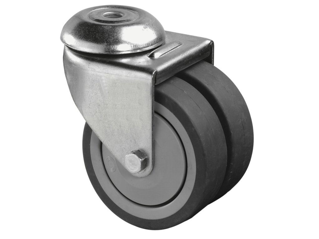 Apparatedoppelrolle B101.A85.075, Produkttyp: Lenkrollen, Befestigung: Rückenloch, Material/Art des Radkörpers: 0, Material der Lauffläche: thermoplastischer Gummi grau, Lager: 0, Ø Rad: 75 mm, Tragkraft: 80 kgDodatočné parametre