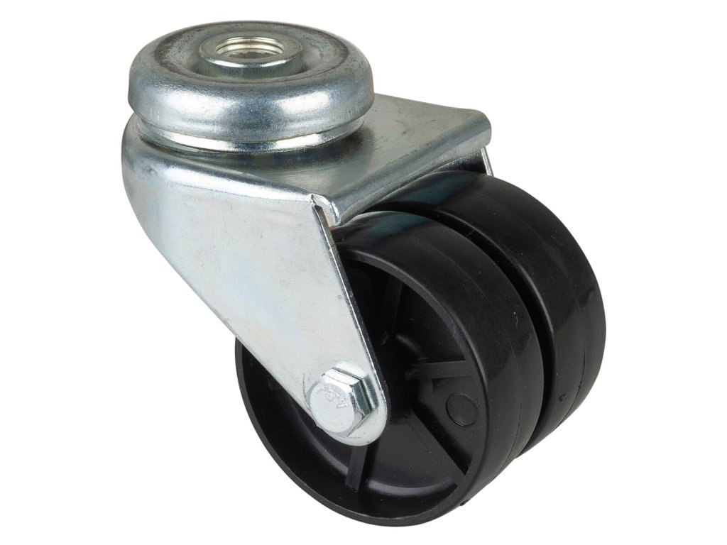 Apparatedoppelrolle B101.A90.051, Produkttyp: Lenkrollen, Befestigung: Rückenloch, Material/Art des Radkörpers: 0, Material der Lauffläche: Kunststoff schwarz, Lager: 0, Ø Rad: 50 mm, Tragkraft: 80 kgDodatočné parametre