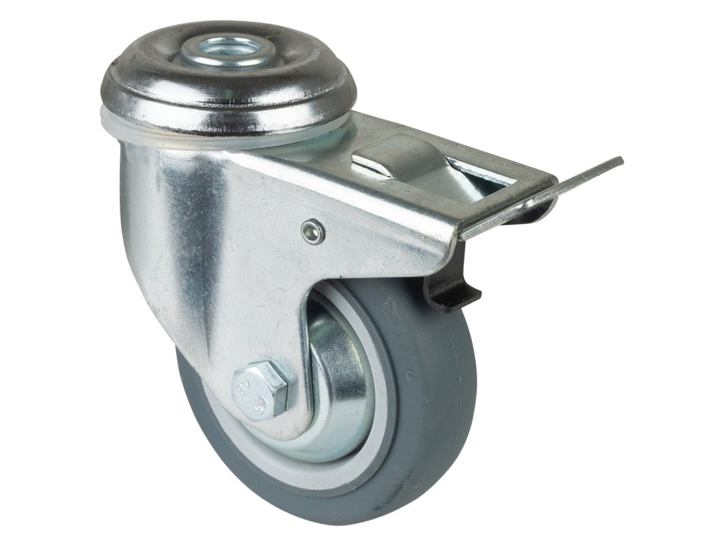 Schwere Apparaterolle C121.A85.081, Produkttyp: Lenkrollen mit Feststeller, Befestigung: Rückenloch, Material/Art des Radkörpers: 0, Material der Lauffläche: thermoplastischer Gummi grau, Lager: 0, Ø Rad: 80 mm, Tragkraft: 80 kgDodatočné parametre