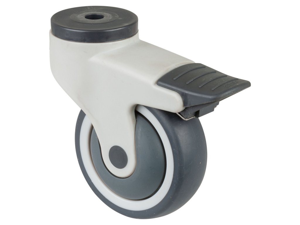 Kunststoffrolle C121.A82.100, Produkttyp: Lenkrollen mit Feststeller, Befestigung: Rückenloch, Material/Art des Radkörpers: 0, Material der Lauffläche: thermoplastischer Gummi grau, Lager: 0, Ø Rad: 100 mm, Tragkraft: 100 kgDodatočné parametre