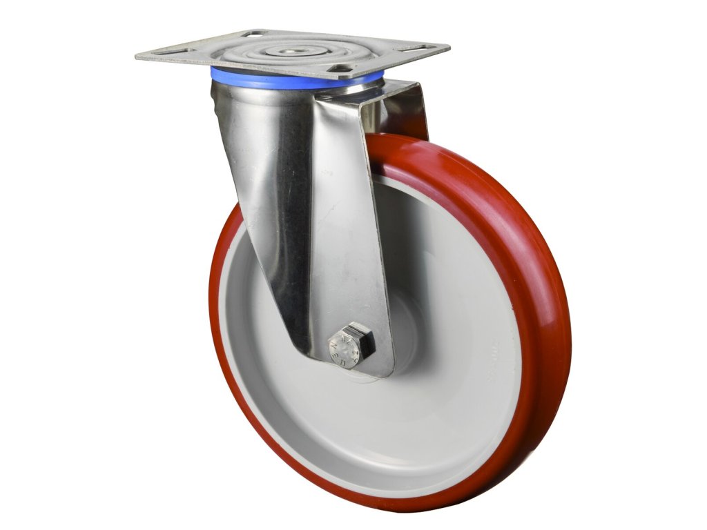Edelstahl Transportrolle H100.B26.200, Produkttyp: Lenkrollen, Befestigung: , Ø Schraubloch: 105x80 mm, Material/Art des Radkörpers: 11, Material der Lauffläche: Polyurethan rot 98 +/-4 Shore A, Lager: 0, Ø Rad: 200 mm, Tragkraft: 300 kgDodatočné parametre