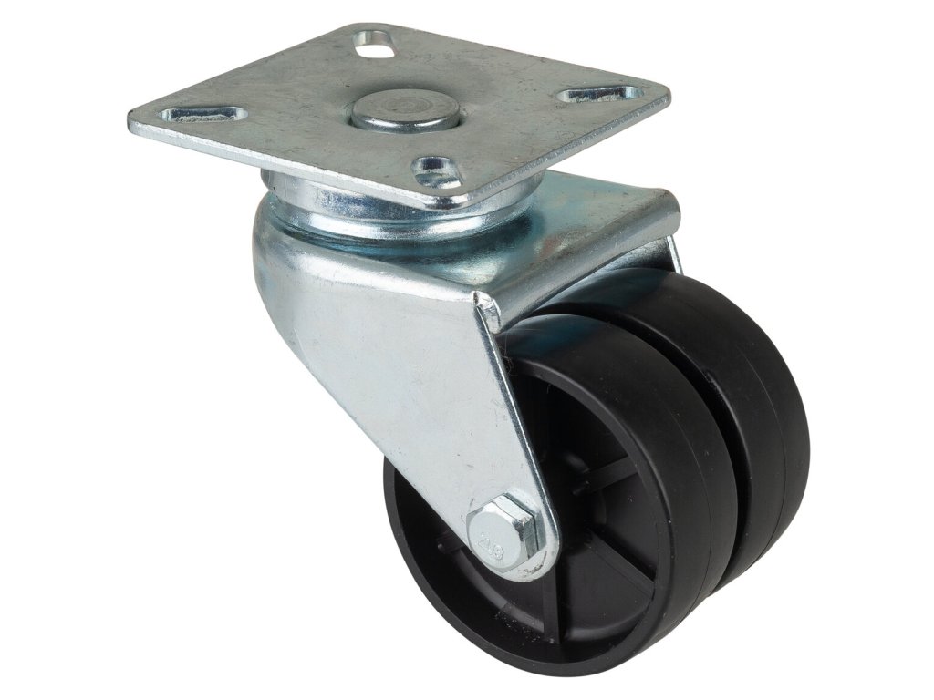 Apparatedoppelrolle B100.A90.051, Produkttyp: Lenkrollen, Befestigung: , Ø Schraubloch: 46x46/38x38 mm, Material/Art des Radkörpers: 6.2, Material der Lauffläche: Kunststoff schwarz, Lager: 0, Ø Rad: 50 mm, Tragkraft: 80 kgDodatočné parametre