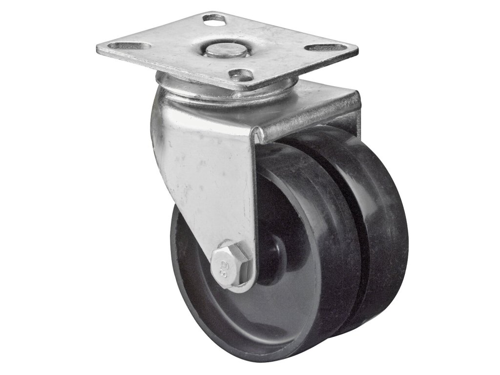 Apparatedoppelrolle B100.A90.076, Produkttyp: Lenkrollen, Befestigung: , Ø Schraubloch: 62x52/50x42 mm, Material/Art des Radkörpers: 8.5, Material der Lauffläche: Kunststoff schwarz, Lager: 0, Ø Rad: 75 mm, Tragkraft: 100 kg