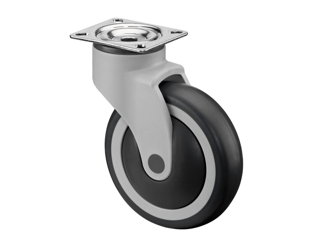 Kunststoffrolle C100.A82.125, Produkttyp: Lenkrollen, Befestigung: , Ø Schraubloch: 61x51/56x46 mm, Material/Art des Radkörpers: 8.1, Material der Lauffläche: thermoplastischer Gummi grau, Lager: 0, Ø Rad: 125 mm, Tragkraft: 100 kgDodatočné parametre