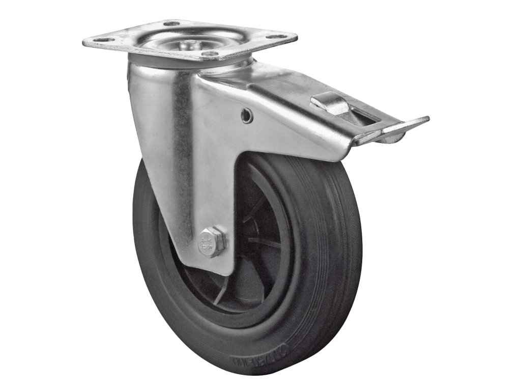 Transportrolle L420.B40.200, Produkttyp: Lenkrollen mit Totalfeststeller, Befestigung: , Ø Schraubloch: 105x75/80 mm, Material/Art des Radkörpers: 11, Material der Lauffläche: Gummi schwarz, Lager: 0, Ø Rad: 200 mm, Tragkraft: 205 kgDodatočné parametre