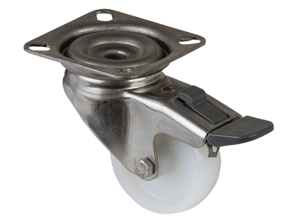 Edelstahl Apparaterolle G120.A90.051, Produkttyp: Lenkrollen mit Feststeller, Befestigung: , Ø Schraubloch: 45x45 mm, Material/Art des Radkörpers: 6.5, Material der Lauffläche: Kunststoff, Lager: 0, Ø Rad: 50 mm, Tragkraft: 55 kgDodatočné parametre