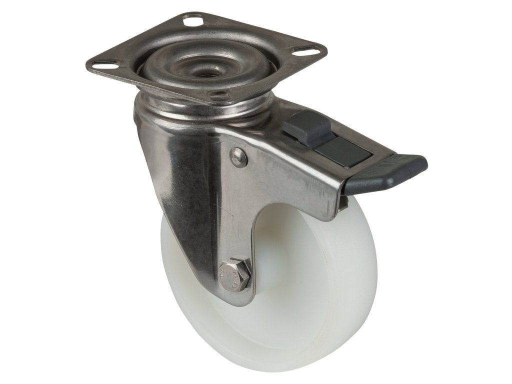 Edelstahl Apparaterolle G120.A90.076, Produkttyp: Lenkrollen mit Feststeller, Befestigung: , Ø Schraubloch: 45x45 mm, Material/Art des Radkörpers: 6.5, Material der Lauffläche: Kunststoff, Lager: 0, Ø Rad: 75 mm, Tragkraft: 60 kgDodatočné parametre