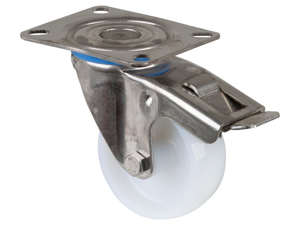 Edelstahl Transportrolle H120.A90.080, Produkttyp: Lenkrollen mit Totalfeststeller, Befestigung: , Ø Schraubloch: 80x60 mm, Material/Art des Radkörpers: 9, Material der Lauffläche: Kunststoff, Lager: 0, Ø Rad: 80 mm, Tragkraft: 100 kgDodatočné parametre