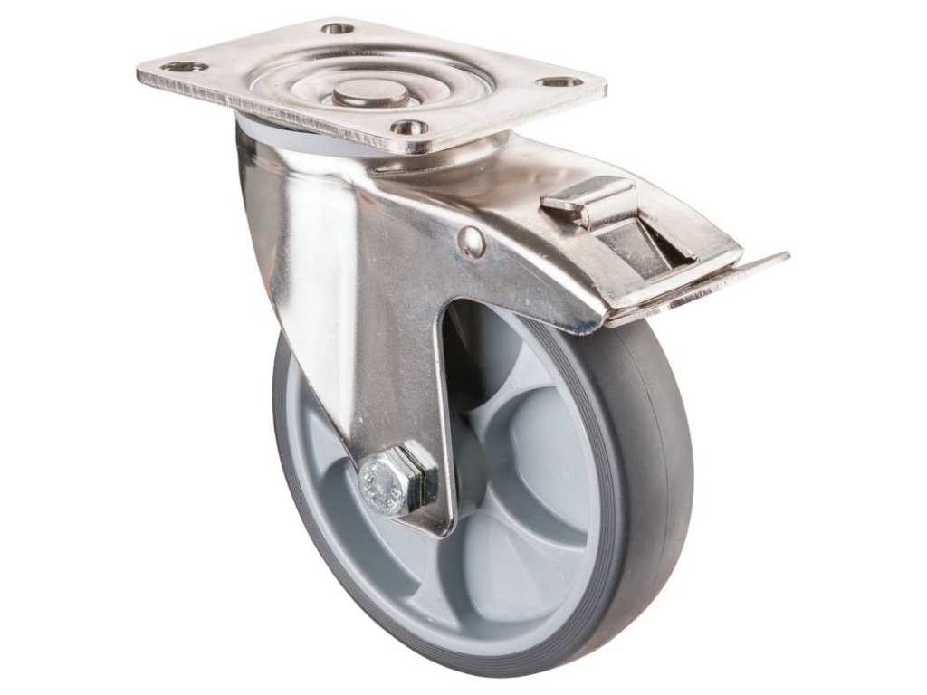 Edelstahl Transportrolle H120.B43.080, Produkttyp: Lenkrollen mit Feststeller, Befestigung: , Ø Schraubloch: 80x60 mm, Material/Art des Radkörpers: 9, Material der Lauffläche: thermoplastischer Gummi grau, Lager: 0, Ø Rad: 80 mm, Tragkraft: 60 kgDodatočné parametre