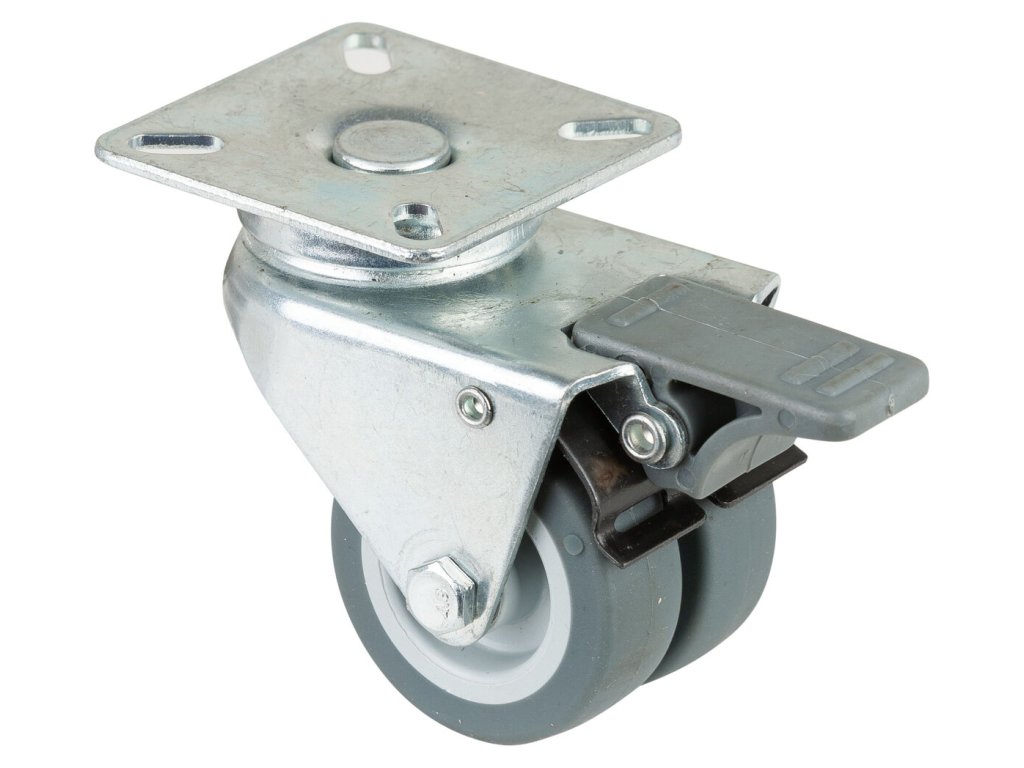 Apparatedoppelrolle B120.A80.050, Produkttyp: Lenkrollen mit Feststeller, Befestigung: , Ø Schraubloch: 46x46/38x38 mm, Material/Art des Radkörpers: 6.2, Material der Lauffläche: thermoplastischer Gummi grau, Lager: 0, Ø Rad: 50 mm, Tragkraft: 60 kg