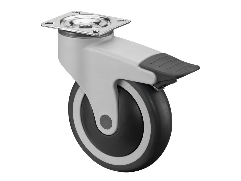 Kunststoffrolle C120.A82.125, Produkttyp: Lenkrollen mit Feststeller, Befestigung: , Ø Schraubloch: 61x51/56x46 mm, Material/Art des Radkörpers: 8.1, Material der Lauffläche: thermoplastischer Gummi grau, Lager: 0, Ø Rad: 125 mm, Tragkraft: 100 kgDodatočné parametre