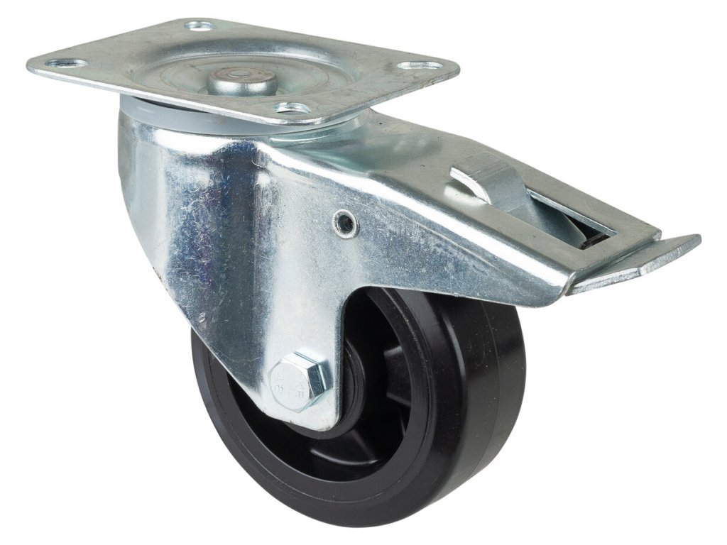 Transportrolle LSS420.B60.125, Produkttyp: Lenkrollen mit Totalfeststeller, Befestigung: , Ø Schraubloch: 105x75/80 mm, Material/Art des Radkörpers: 11, Material der Lauffläche: Elastikgummi schwarz, Lager: 0, Ø Rad: 125 mm, Tragkraft: 300 kgDodatočné parametre