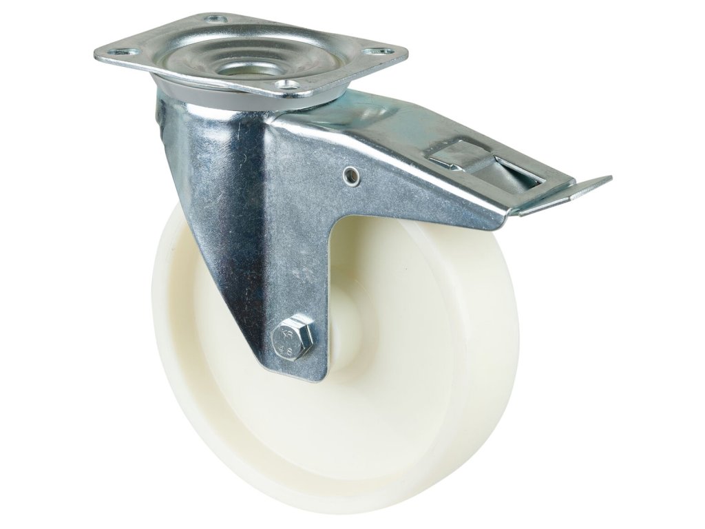 Transportrolle L420.B10.200, Produkttyp: Lenkrollen mit Feststeller, Befestigung: , Ø Schraubloch: 105x75/80 mm, Material/Art des Radkörpers: 11, Material der Lauffläche: Kunststoff, Lager: 0, Ø Rad: 200 mm, Tragkraft: 300 kgDodatočné parametre