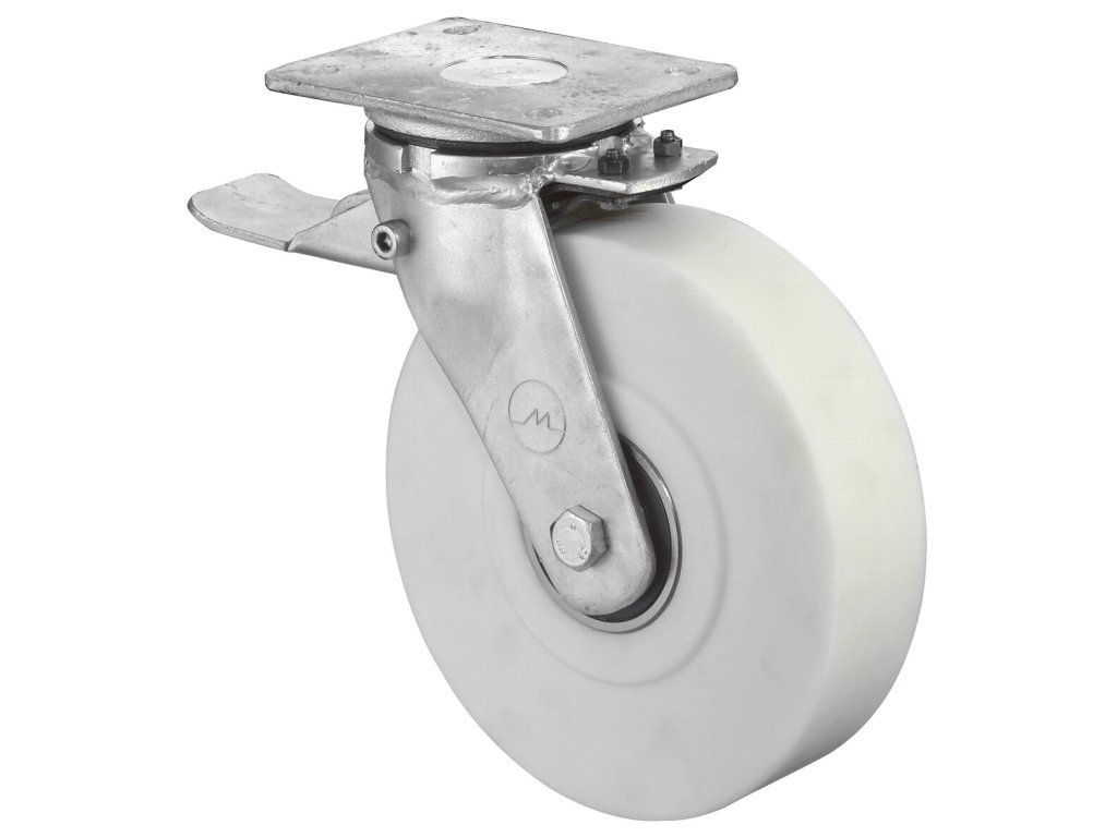 Schwerlastrolle RR120.B16.200, Produkttyp: Lenkrollen mit Rad-/Totalfeststeller, Befestigung: , Ø Schraubloch: 105x75/80 mm, Material/Art des Radkörpers: 11, Material der Lauffläche: Polyamid gegossen, Lager: 0, Ø Rad: 200 mm, Tragkraft: 1500 kgDodatočné parametre
