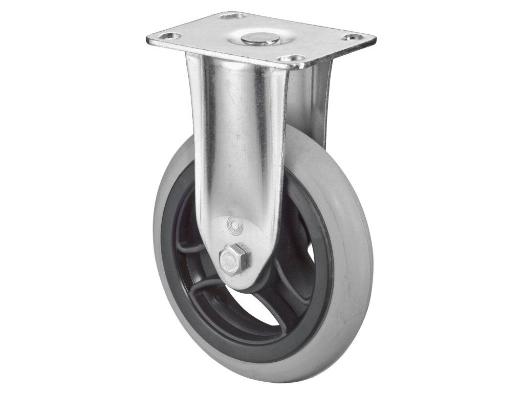 Schwere Apparaterolle C110.A86.125, Produkttyp: Bockrollen, Befestigung: Zapfenbefestigung, Ø Schraubloch: 75x45 mm, Material/Art des Radkörpers: 8.3, Material der Lauffläche: Gummi grau, pannensicher, Lager: 0, Ø Rad: 125 mm, Tragkraft: 35 kgDodatočné parametre