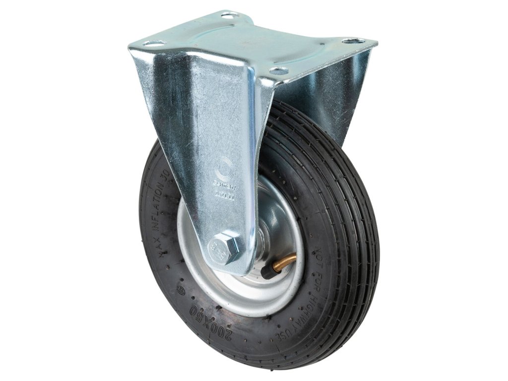 Transportrolle L410.C90.200, Produkttyp: Bockrollen, Befestigung: , Ø Schraubloch: 105x75 mm, Material/Art des Radkörpers: 11, Material der Lauffläche: Luftrad, Gummi schwarz, Lager: 0, Ø Rad: 200 mm, Tragkraft: 75 kgDodatočné parametre