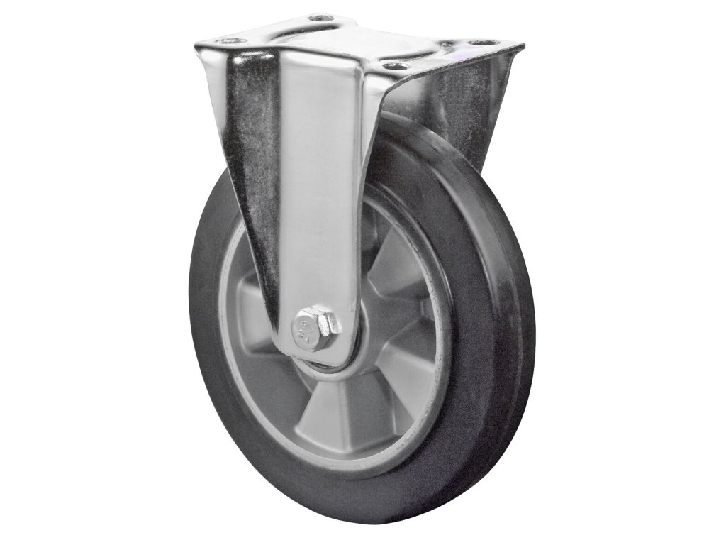 Transportrolle L410.B80.200, Produkttyp: Bockrollen, Befestigung: , Ø Schraubloch: 105x75/80 mm, Material/Art des Radkörpers: 11, Material der Lauffläche: Elastikgummi schwarz, Lager: 0, Ø Rad: 200 mm, Tragkraft: 350 kgDodatočné parametre