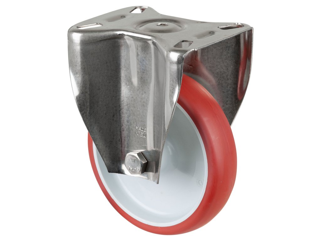 Edelstahl Transportrolle H110.B26.150, Produkttyp: Bockrollen, Befestigung: , Ø Schraubloch: 105x80 mm, Material/Art des Radkörpers: 11, Material der Lauffläche: Polyurethan rot 98 +/-4 Shore A, Lager: 0, Ø Rad: 150 mm, Tragkraft: 280 kgDodatočné parametre