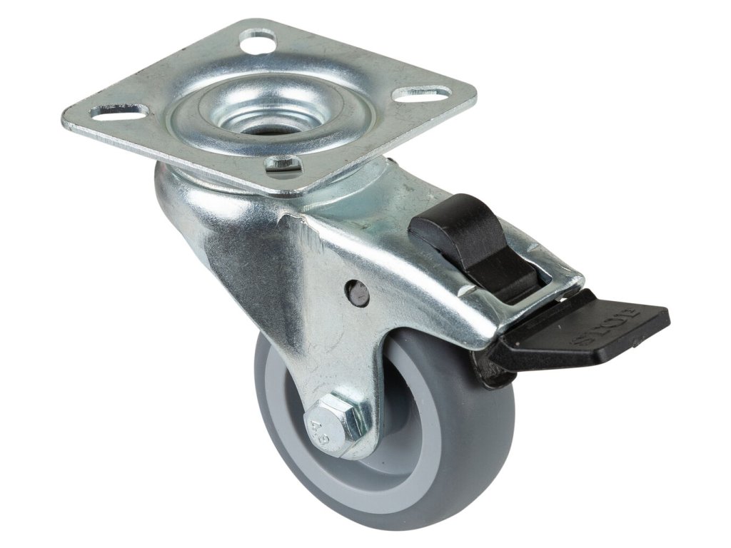 Apparaterolle A320.A80.050, Produkttyp: Lenkrollen mit Feststeller, Befestigung: Expanderbefestigung, Ø Schraubloch: 40x40/34x34 mm, Material/Art des Radkörpers: 6.3, Material der Lauffläche: thermoplastischer Gummi grau, Lager: 0, Ø Rad: 50 mm, Tragkraft: 50 kgDodatočné parametre