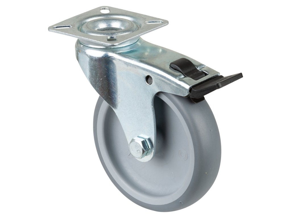 Apparaterolle A320.A80.100, Produkttyp: Lenkrollen mit Feststeller, Befestigung: Expanderbefestigung, Ø Schraubloch: 47x47/37x37 mm, Material/Art des Radkörpers: 6.3, Material der Lauffläche: thermoplastischer Gummi grau, Lager: 0, Ø Rad: 100 mm, Tragkraft: 70 kgDodatočné parametre