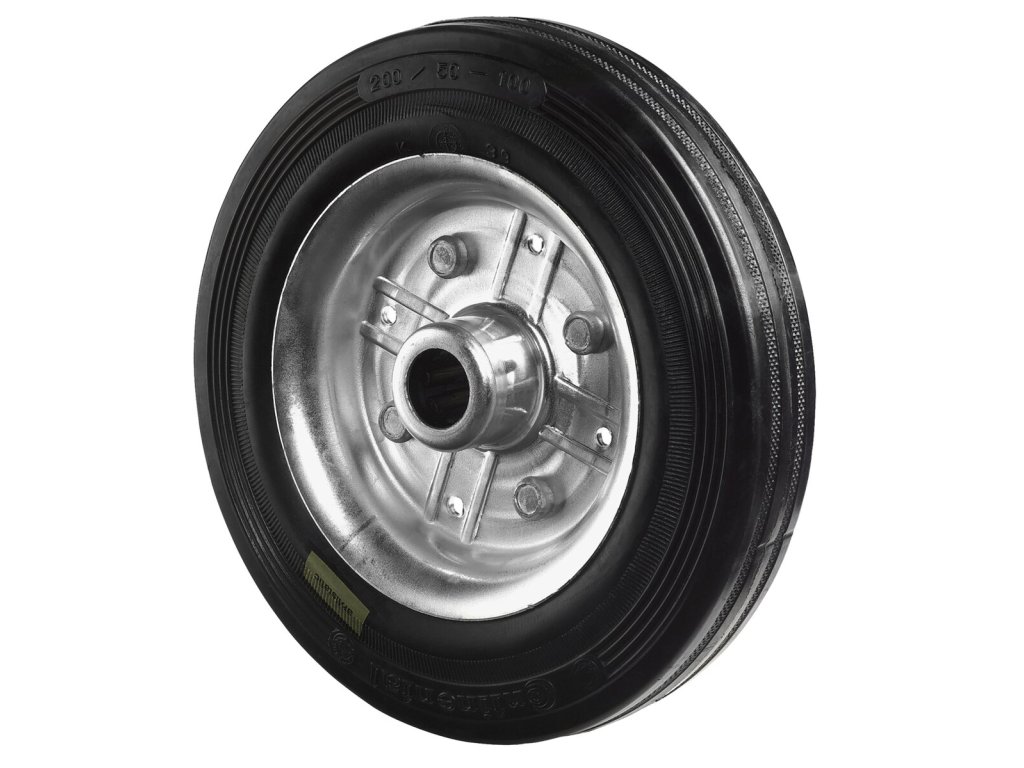 Gummirad B58.200, Produkttyp: Räder, Material/Art des Radkörpers: Stahlfelge verzinkt, Material der Lauffläche: Gummi schwarz, elektrisch leitfähig, Lager: Rollenlager, Ø Rad: 200 mm, Tragkraft: 225 kgDodatočné parametre