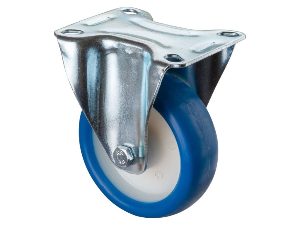 Transportrolle L410.B36.100, Produkttyp: Bockrollen, Befestigung: , Ø Schraubloch: 84x64/76x56 mm, Material/Art des Radkörpers: 9, Material der Lauffläche: Polyurethan blau 85 +/-4 Shore A, Lager: 0, Ø Rad: 100 mm, Tragkraft: 120 kg