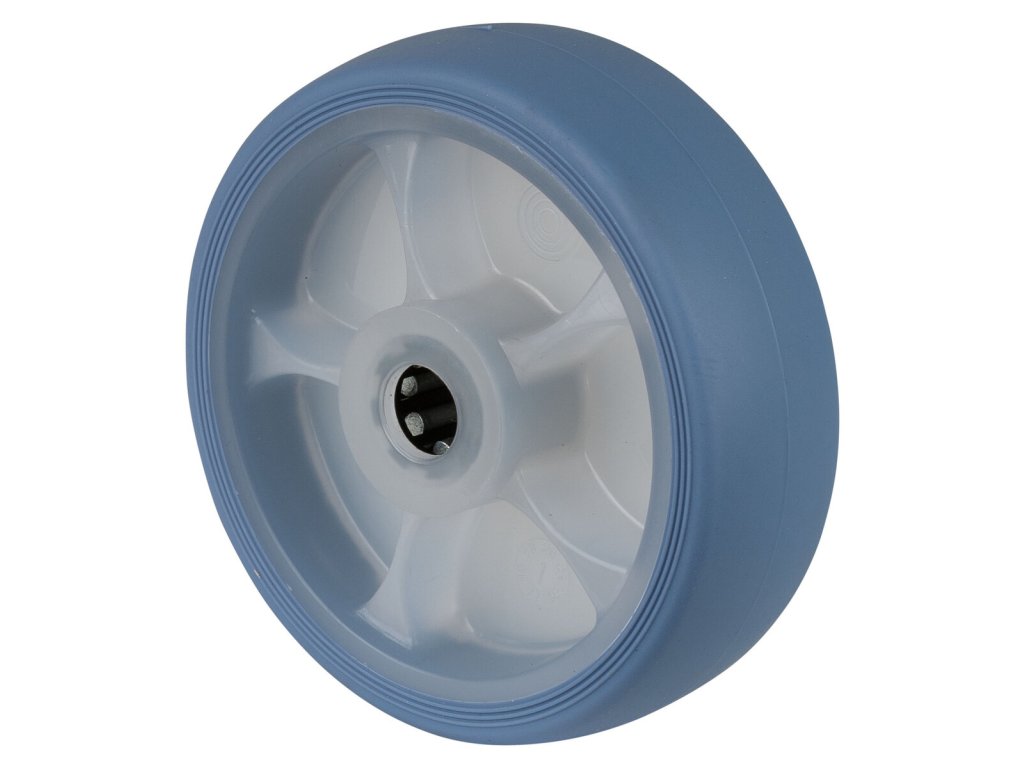 Gummirad B44.101.F005, Produkttyp: Räder, Material/Art des Radkörpers: Kunststoff natur, Material der Lauffläche: thermoplastischer Gummi hellblau, Lager: Rollenlager, Ø Rad: 100 mm, Tragkraft: 100 kgDodatočné parametre