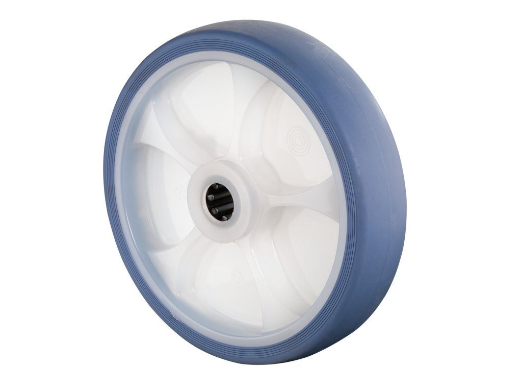Gummirad B44.201.F005, Produkttyp: Räder, Material/Art des Radkörpers: Kunststoff natur, Material der Lauffläche: thermoplastischer Gummi hellblau, Lager: Rollenlager, Ø Rad: 200 mm, Tragkraft: 220 kgDodatočné parametre