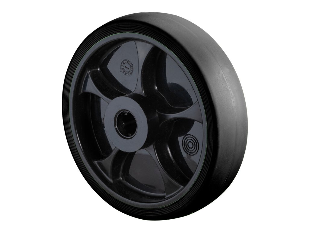 Gummirad B44.081.F006, Produkttyp: Räder, Material/Art des Radkörpers: Kunststoff schwarz, Material der Lauffläche: thermoplastischer Gummi schwarz, Lager: Rollenlager, Ø Rad: 80 mm, Tragkraft: 100 kgDodatočné parametre