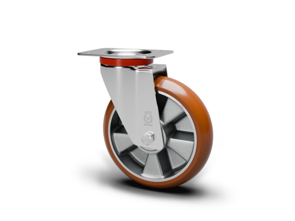 Hliníkový disk kolieska s 2x guličkovým ložiskom, oblý polyuretánový neznačkujúci behúň, Shore A91. Oceľová pozinkovaná vidlica. Priemer kolieska 160mm, šírka behúňa 50mm, veľkosť prírubovej dosky 138x109mm, rozteč otvorov 105x80mm, veľkosť otvoru na uchytenie 11mm, stavebná výška 195mm, centrovanie 58mm, nosnosť 300kg.